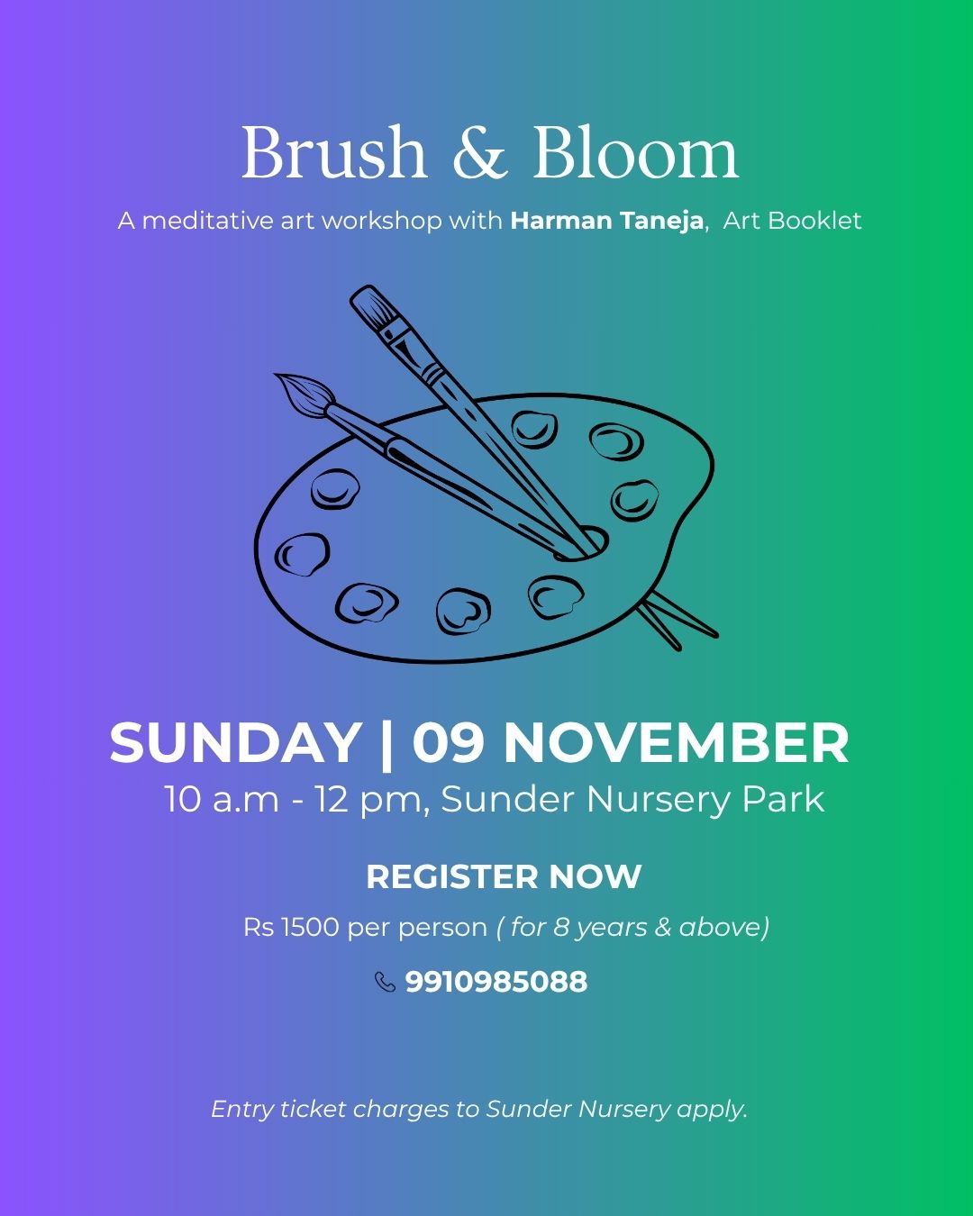 Blending mindfulness with artistic exploration, the workshop will begin with a short guided observation in the gardens, inviting participants to draw inspiration from the colours, textures and rhythms of nature. Under the guidance of artist-facilitator Harman Taneja, participants will then learn the fundamentals of fluid acrylic pouring — a technique that celebrates spontaneity and flow. Each participant will create their own abstract artwork on canvas, capturing the mood and movement of their surroundings. The session will conclude with a brief reflection circle, fostering a sense of connection between individual expression and the shared environment.