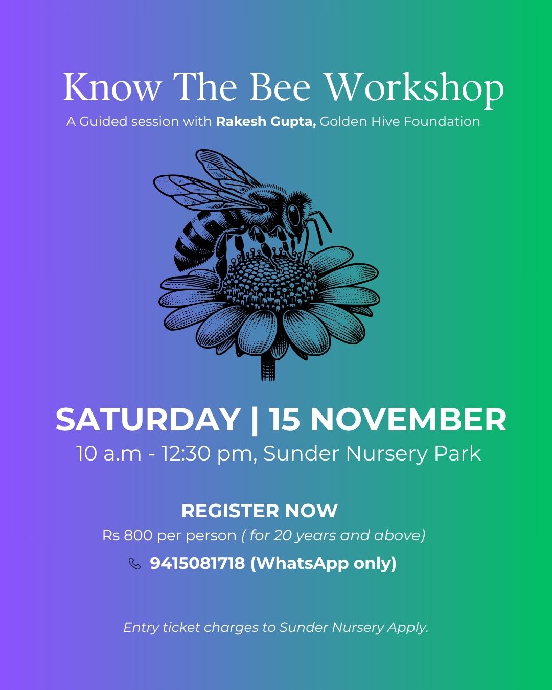 We know that the bees play an important role for continuation of human life on earth. The interactive workshop will make you understand the organized life and infinite capabilities of the bees. You will also get to know how to become an urban beekeeper to enjoy the buzz of the bees - without the agony of getting stung by them.The workshop will be 'hands on' to help you enjoy the wonderful world of the bees and point out the ways you can help the most important pollinators to survive.
