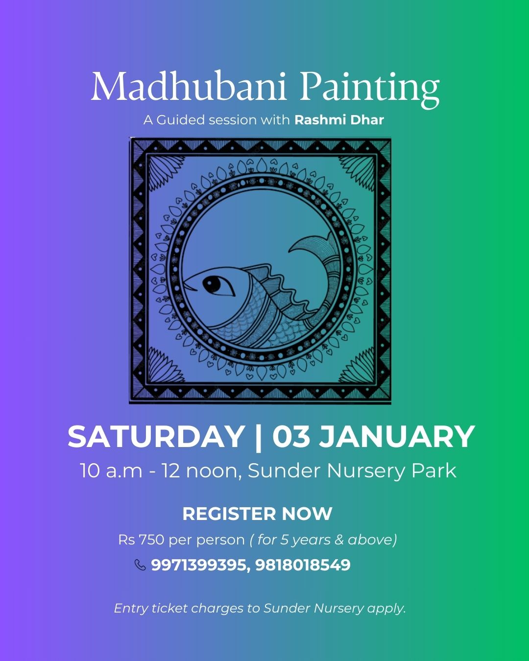 Dive into a Madhubani painting workshop for peace! 🎨 Release stress as you connect with nature's beauty and the vibrant ancient and traditional art form. This creative session is designed to help you find calmness, express yourself, and enjoy a fulfilling artistic journey.
