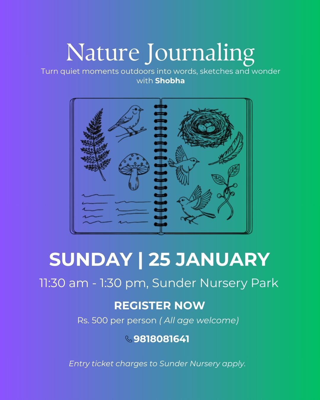 Shobha - a facilitator with a strong interest in nature-based observation and creative documentation - centers on using nature journaling as a tool to deepen awareness of the natural environment through careful observation, sketching, note-making, and reflection.